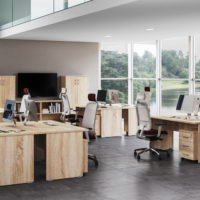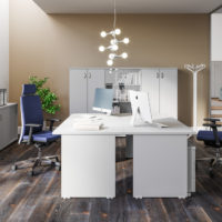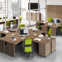 Asztalok számos formációban, legyen szó egyszemélyes vagy többszemélyes munkahelyekről. Az asztalok formaválasztéka számtalan elrendezési lehetőséget nyújt, így biztosítva a helyiség kihasználtságát , a rendezett tér kialakítását. Az összeforgatott asztalokat, ha szükséges paravánokkal választjuk el egymástól.